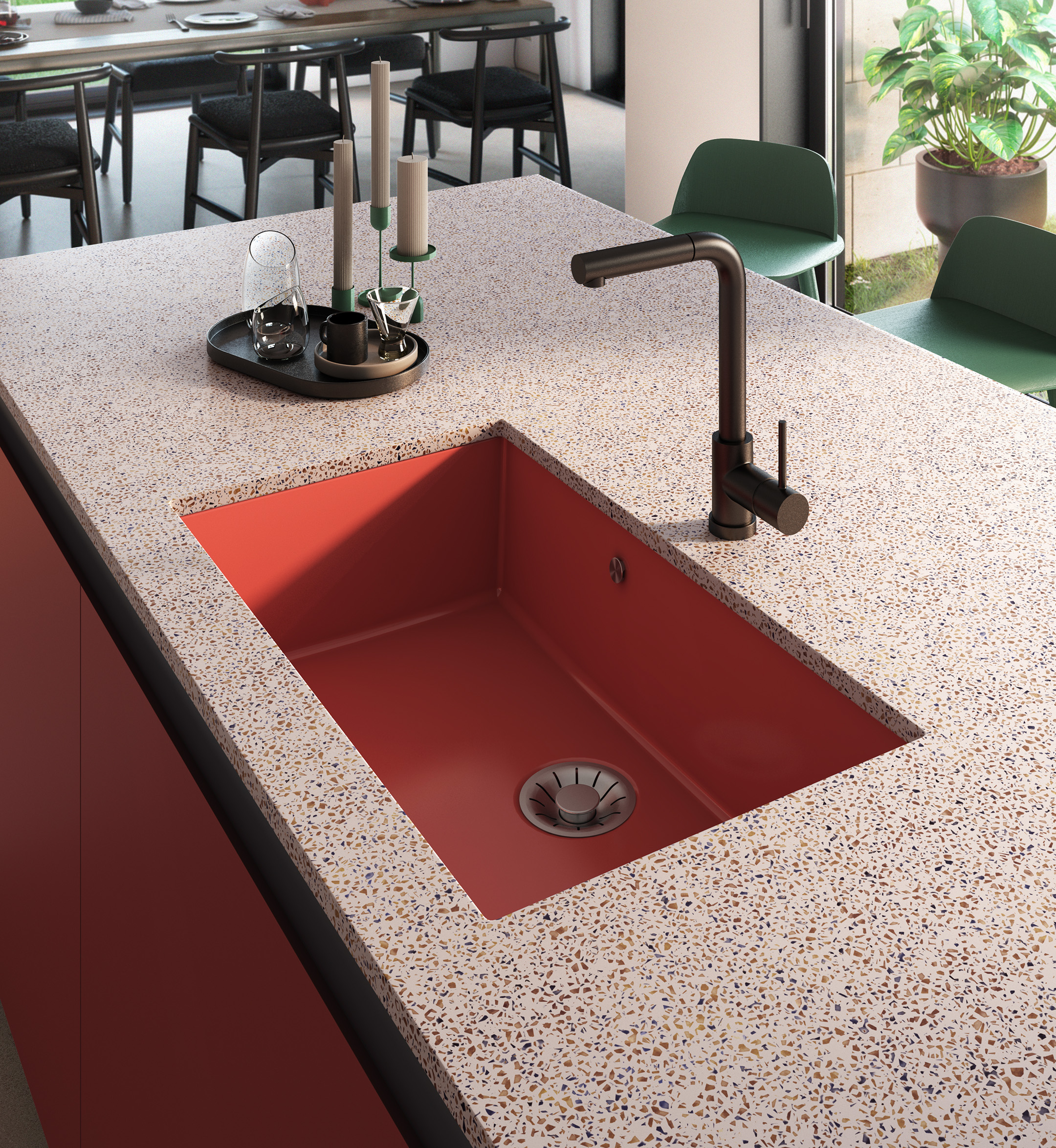 Aigüera de cuina sintètica, fabricada amb quars i resines, d’una cubeta rectangular amb radi mínim (7 mm) i per a muntatge sota taulell en un moble mínim de 90 cm. En aquesta aigüera sota taulell, l’aixeta es pot instal·lar al taulell o a la cubeta. L’aigüera Up&Down Atlas B es fabrica en tots els colors de la nostra gamma. Cada aigüera de la col·lecció Up&Down inclou una vàlvula decorativa plus de 3″1/2 i un suport metàl·lic amb cargols regulables per a la instal·lació. Formes clares, línies senzilles.